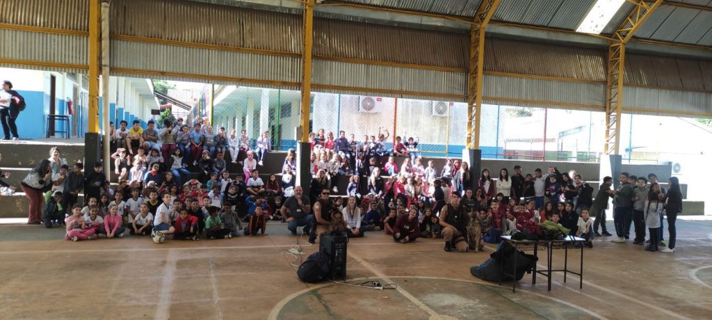 A última apresentação deste ano foi feita na Escola Municipal Monteiro Lobato, onde foi realizada uma apresentação do Canil do 2º Batalhão da Polícia Militar, com apresentação dos policiais do trabalho realizado pela equipe junto aos cães treinados.
