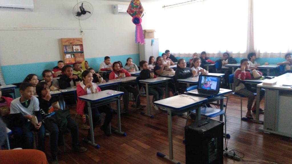 Também foi distribuído pipoca e brindes aos alunos.