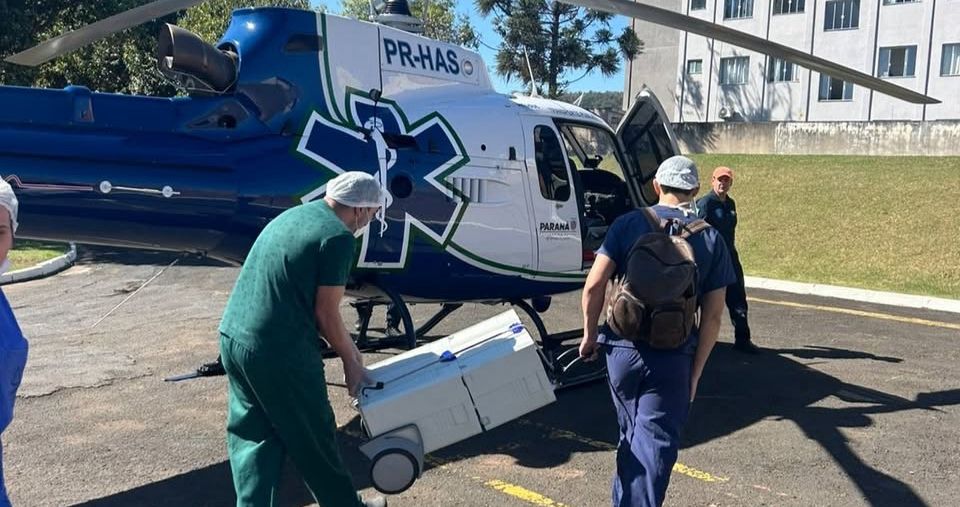 O coração seguiu de helicóptero garantindo a agilidade e segurança no transporte necessários para que o receptor o receba bem preservado.