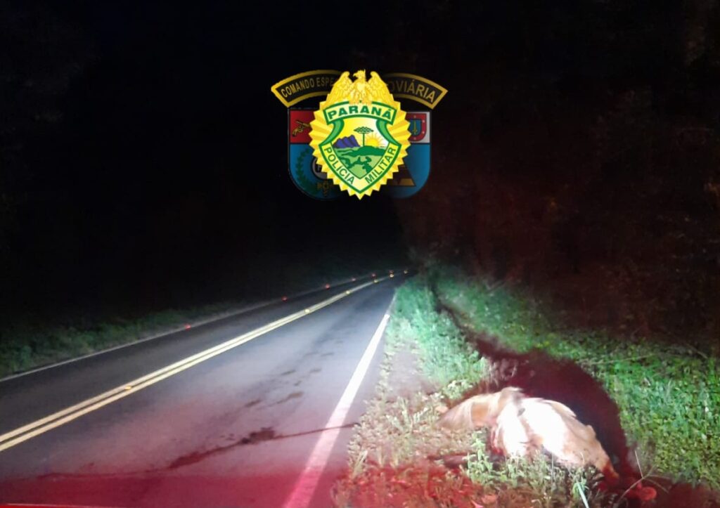 Um motociclista de 29 anos pilotava sua Honda Bros na PR 422, sentido Wenceslau Braz/Tomazina, por volta das 21horas, quando no km 44 mais 700 metros, atropelou um cavalo na pista.