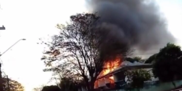 Por volta das 17h55 deste sábado, um incêndio de grandes proporções atingiu uma antiga escola de Itambaracá, a Severino da Silva.