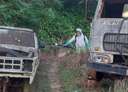 O Departamento de Vigilância Sanitária/Controle de Endemias, da Secretaria Municipal de Saúde de Jacarezinho, realizou nesta terça-feira (11) pulverizações de inseticida contra o Aedes aegypti nas empresas e oficinas localizadas às margens da BR-153. O trabalho de pulverização com bomba costal ocorreu nas oficinas do Japonês, Celsinho, Toldos Líder, na antiga oficina Nogari e em outros locais nas imediações.