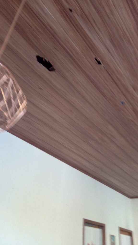 Dia 20 deste mês, sem nenhum aviso prévio, a pedreira executou uma explosão tão forte que, além de causar inúmeros danos no imóvel da comerciante Simone Oliveira de Pádua, uma pedra chegou a perfurar o forro e cair em cima de sua cama. A casa de Simone está localizada a cerca de 30 metros de onde estão ocorrendo as detonações.