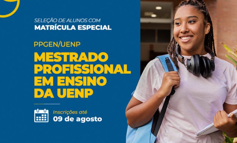 O Programa de Pós-Graduação em Ensino (PPGEN) da Universidade Estadual do Norte do Paraná (UENP) divulgou, no dia 26 de julho, a seleção de alunos com matrícula especial para o segundo semestre de 2023. As inscrições vão até 9 de agosto.