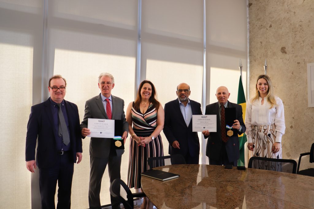 Outorga conferida ao procuradores de Justiça do Ministério Público do Paraná reconhece a contribuições para o desenvolvimento econômico e social. É a mais alta honraria do Estado no âmbito da Fazenda Pública. Entrega foi feita pelo secretário da Fazenda, Renê Garcia Júnior.