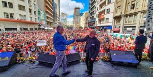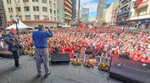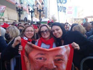 A administradora Ligia Rigoni também viajou mais de 400 km para vir ao ato de Lula e Requião. Da cidade de Quedas do Iguaçu, no Centro-Oeste do estado, ela diz que o governo Ratinho Jr. deixou muito a desejar, especialmente na área de educação. Ela diz acreditar que a grande presença de jovens e seu envolvimento na campanha de Lula e Requião fazem diferença nas eleições.