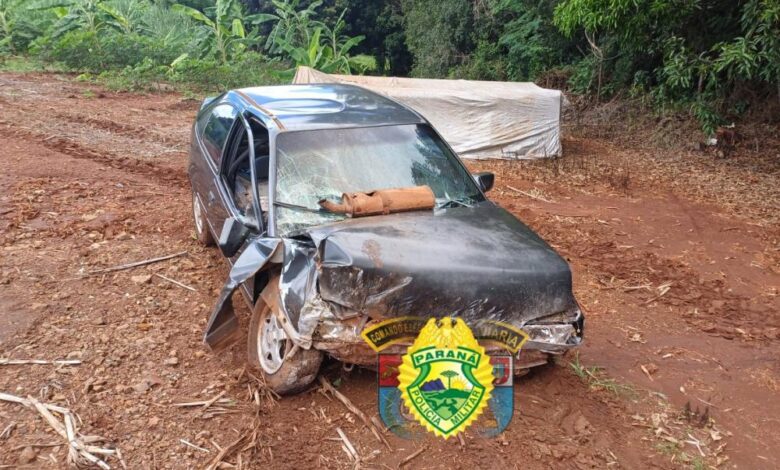 Carro bate em muro e deixa dois feridos na PR-092; passageiro fugiu do hospital