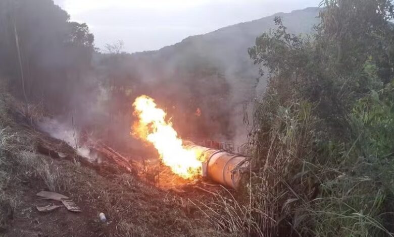 O local foi isolado devido ao risco de explosão e, momentos depois, os tanques da carreta acabaram realmente explodindo.