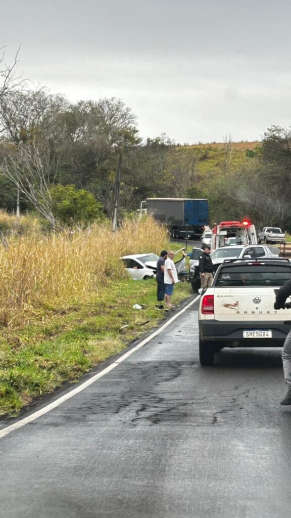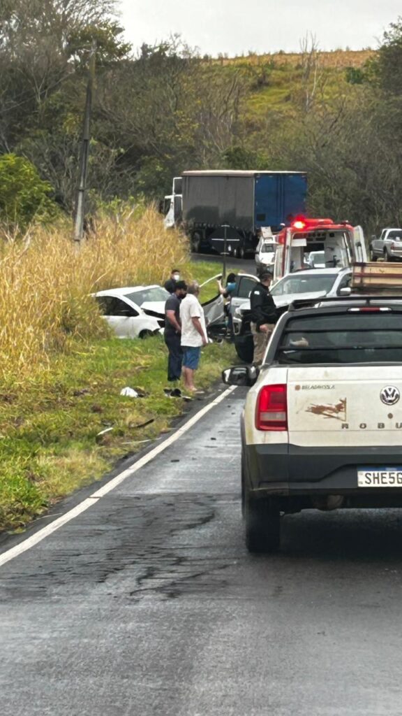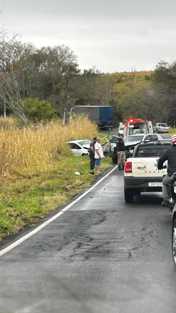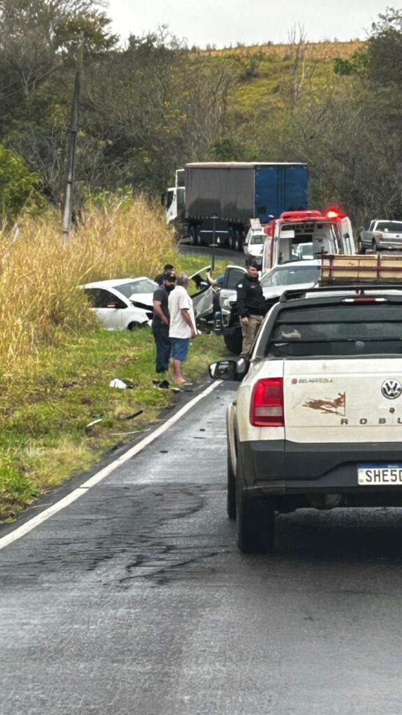 Um acidente ocorrido na PR-218 , km 104, mais 200 metros, município de Nova Fátima , por volta das 8h30 de ontem, 9, envolveu três veículos: uma Chevrolet S10 com placas de Ribeirão do Pinhal dirigida por um condutor de 51 anos, que não se feriu; um Ford Focus, placas de Arapongas – PR, conduzido por um homem de 57 anos, com ferimentos e encaminhado pelo SAMU para a Santa Casa de Cornélio Procópio, e um VW Fox com placas de Curiúva. A condutora de 53 anos sofreu ferimentos mais sérios e foi encaminhado pelo Samu Regate Aéreo para o Hospital Universitário de Londrina.