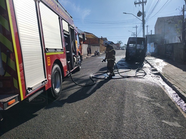 Jacarezinho – Uma van particular que prestava apoio voluntário a peregrinos rumo ao Santuário de São Miguel Arcanjo, em Bandeirantes, foi totalmente destruída por um incêndio na tarde deste sábado (27), por volta das 15h50, na Rua São Paulo, bairro Vila São Pedro.