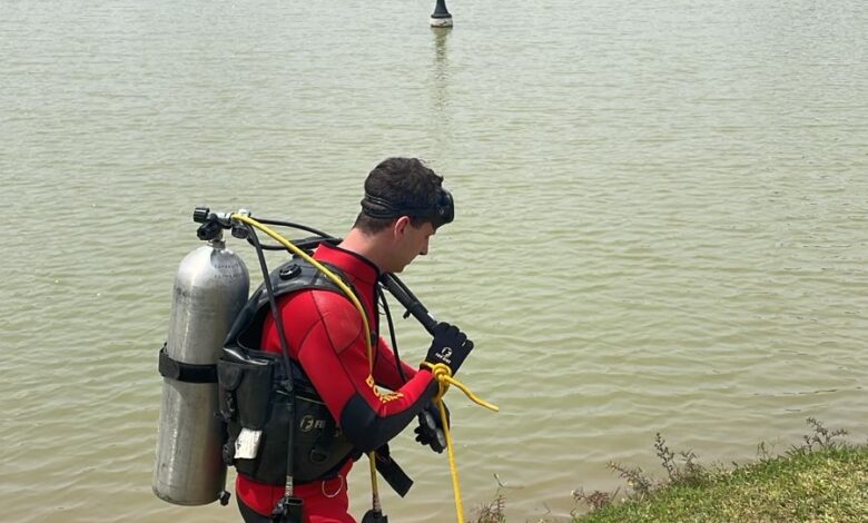 “Ao chegar no local foi constatado que havia uma vítima masculina ainda submersa. Imediatamente foi dado início às buscas utilizando equipamentos de mergulho. Segundo informações de populares, a vítima realizava nado recreativo juntamente com outras três pessoas quando