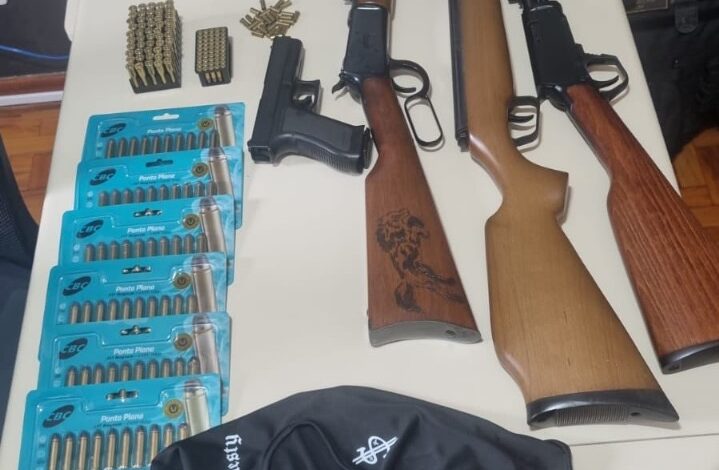 Polícia cumpre mandado de busca e apreensão e apreende munições e armas em residência