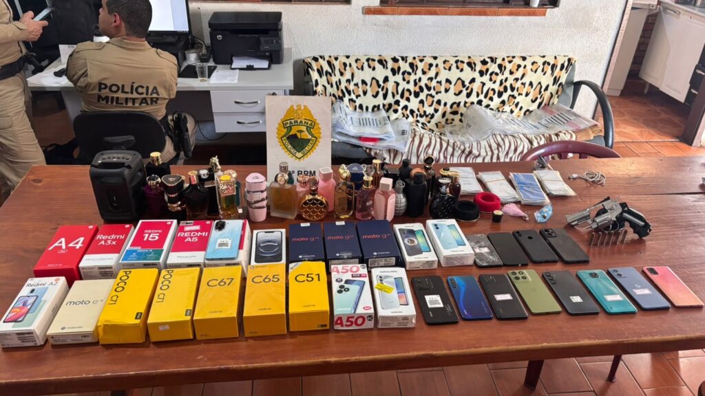 Com o homem, os policiais recuperaram todos os itens roubados, incluindo os 32 perfumes, 26 celulares, uma caixa de som e um conjunto de capinhas.