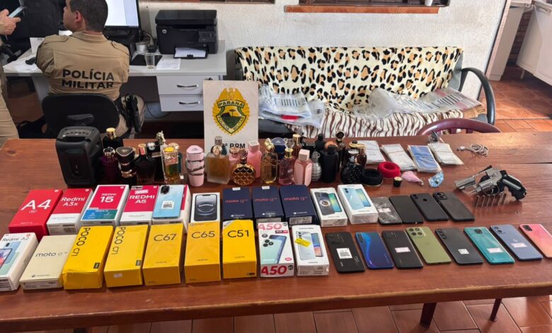 Com o homem, os policiais recuperaram todos os itens roubados, incluindo os 32 perfumes, 26 celulares, uma caixa de som e um conjunto de capinhas.