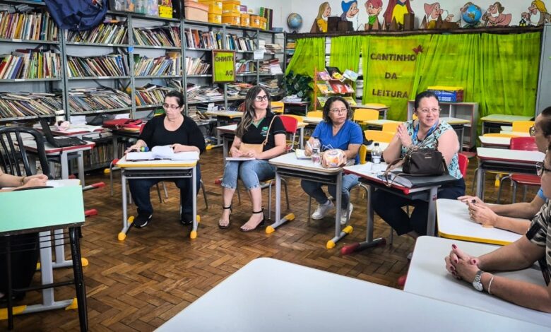 Nesta etapa, o encontro foi realizado com a equipe da Escola Municipal Pingo de Gente, dando continuidade às ações já desenvolvidas na Escola Municipal do Campo Arco-Íris, no Distrito Nossa Senhora Aparecida, e em reuniões com gestores e professores no auditório da Secretaria.