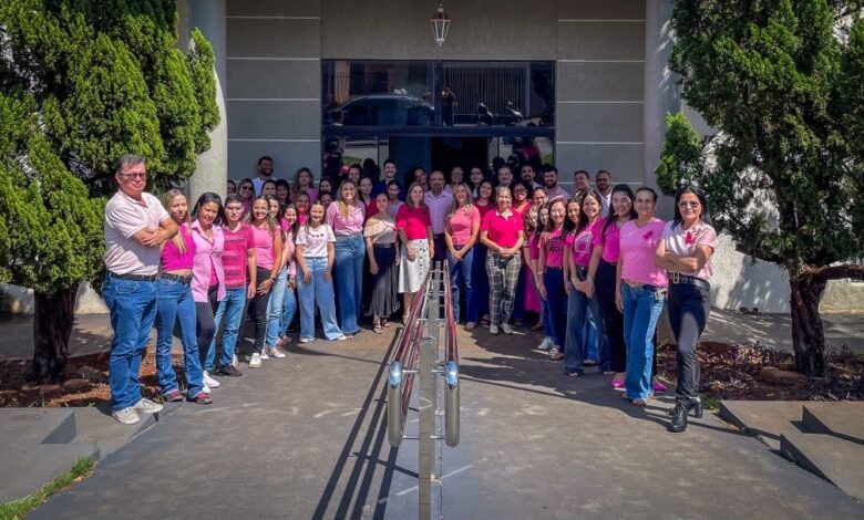 Reunidos em frente ao Paço Municipal “Braulio Barbosa Ferreira”, os colaboradores vestiram rosa para reforçar a importância dos cuidados com a saúde e do incentivo à realização de exames preventivos, como a mamografia e o autoexame das mamas