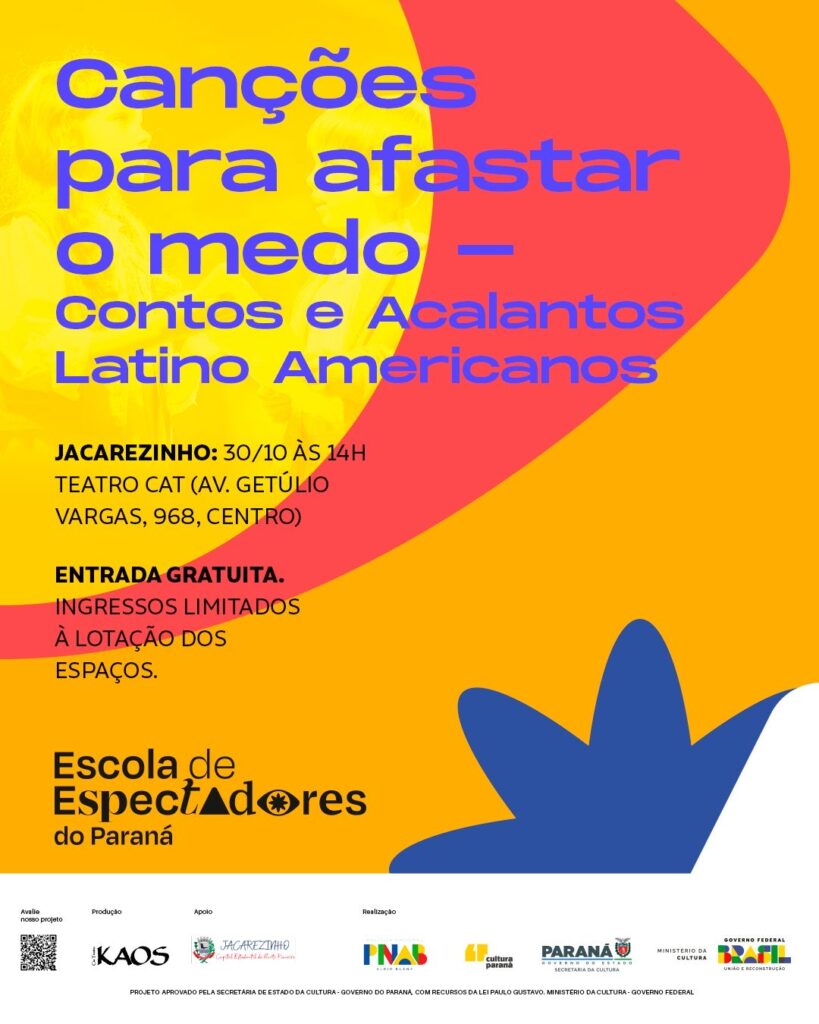 O espetáculo “Canções para afastar o medo – Contos e Acalantos Latino Americanos”, da QINTI Companhia, chega a Jacarezinho no dia 30 de outubro, no Teatro CAT, com entrada gratuita e classificação livre para todas as idades. A peça busca celebrar a infância, os afetos e as vozes ancestrais através de contos e cantigas de ninar, convidando o público a adentrar em uma travessia poética pela América Latina.