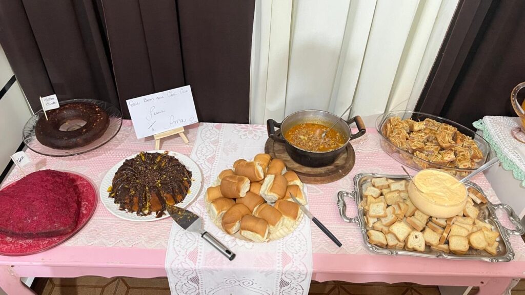 Após a ministração, as mulheres participaram de um momento de comunhão, com risadas, conversas sinceras e uma mesa cuidadosamente preparada, simbolizando a delicadeza e a força feminina.