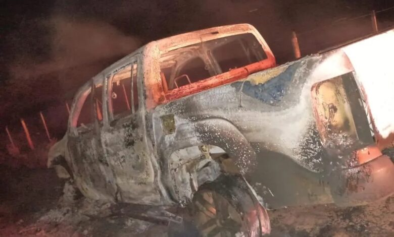 O veículo, uma VW Amarok foi totalmente consumida pelo fogo.