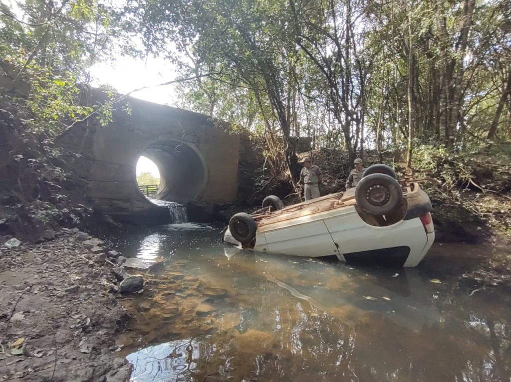 Na manhã desta quarta-feira (19), moradores de Santo Antônio da Platina, no Paraná, se depararam com um carro capotado nas águas do Ribeirão das Bicas, no bairro rural Ribeirão Bonito.