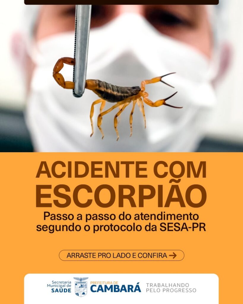 A Prefeitura Municipal de Cambará publicou o passo a passo para o atendimento a pessoas vítimas de picadas de escorpião conforme orientação da Secretaria Estadual da Saúde do Paraná.