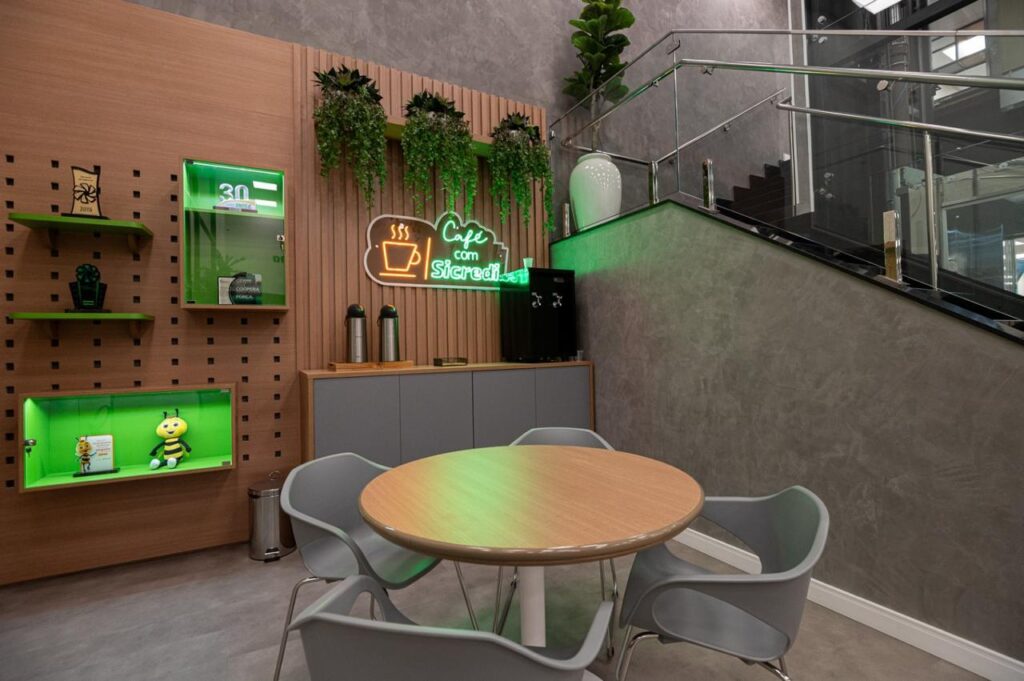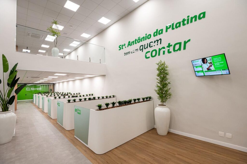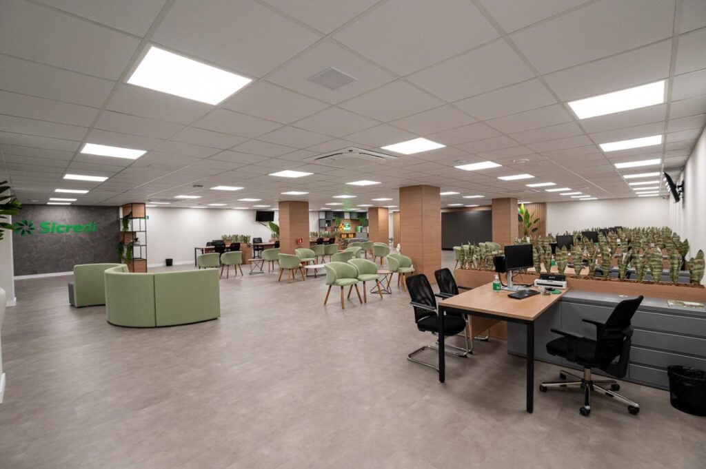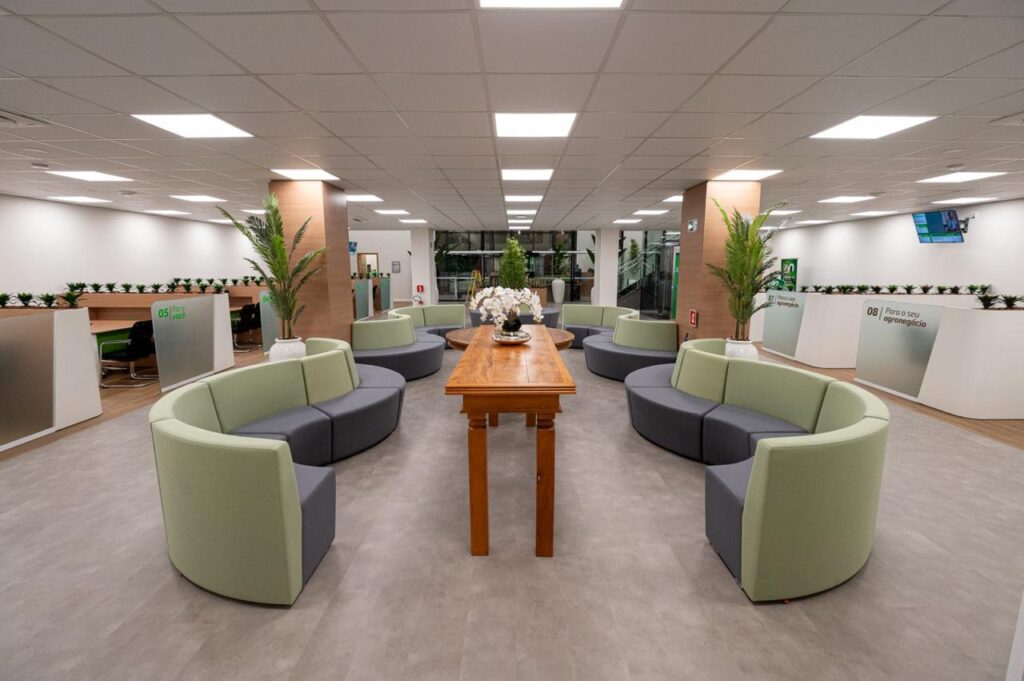 Com 1.012,04m2, o novo prédio traduz o crescimento e a solidez da cooperativa na região. A estrutura ampla e funcional foi pensada para garantir melhor atendimento, fluidez no espaço e um ambiente acolhedor, que valoriza a convivência e o relacionamento.