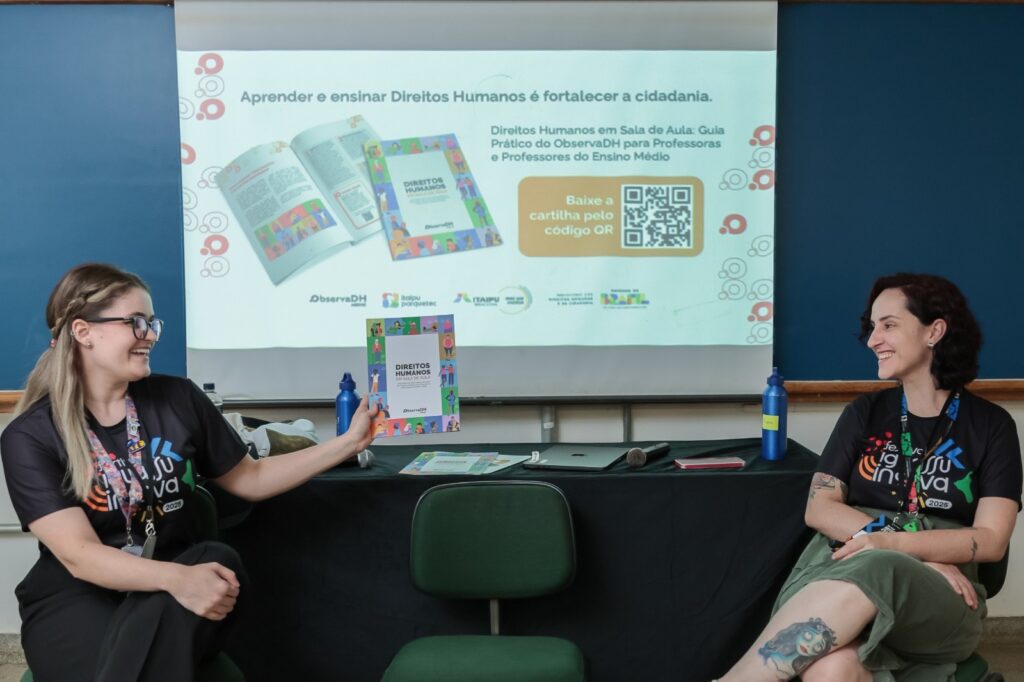 A cartilha “Direitos Humanos em Sala de Aula – Guia Prático do Observatório Nacional dos Direitos Humanos para Educadoras e Educadores do Ensino Médio” foi lançada na última quinta-feira (23), pelo Governo do Brasil, Ministério dos Direitos Humanos e da Cidadania (MDHC), Itaipu Binacional e Itaipu Parquetec. A apresentação ocorreu durante painel com o tema “Plataforma ObservaDH: o papel dos dados na formulação de políticas públicas para Direitos Humanos”, durante o Festival Iguassu Inova, em Foz do Iguaçu (PR).