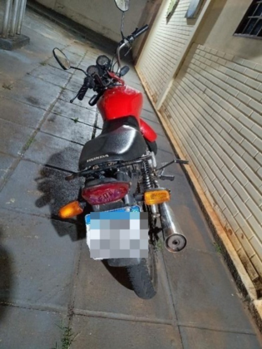 A equipe realizava rondas preventivas quando uma motocicleta de cor vermelha entrou na contramão da via em frente à viatura. Ao perceber o erro, o condutor retornou ao sentido correto, o que despertou a atenção dos policiais. Durante a observação, foi notado que o veículo aparentava ser antigo, porém ostentava uma placa nova (modelo Mercosul), o que levantou suspeitas.