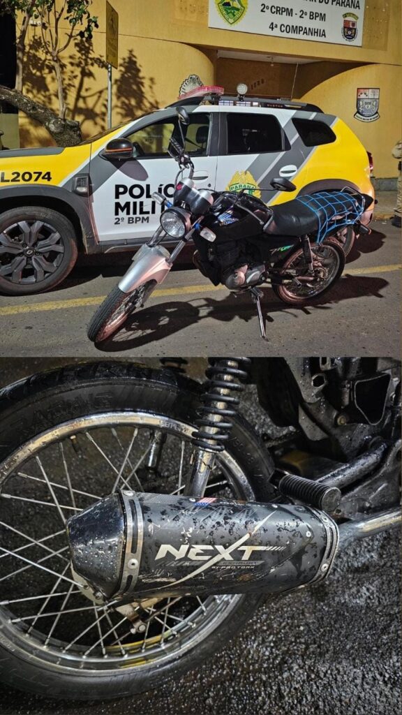 Durante patrulhamento de rotina na área central de Santo Antônio da Platina, na tarde desta segunda-feira (2 de novembro de 2025), uma equipe da Polícia Militar flagrou uma motocicleta trafegando em alta velocidade e com ruído excessivo.