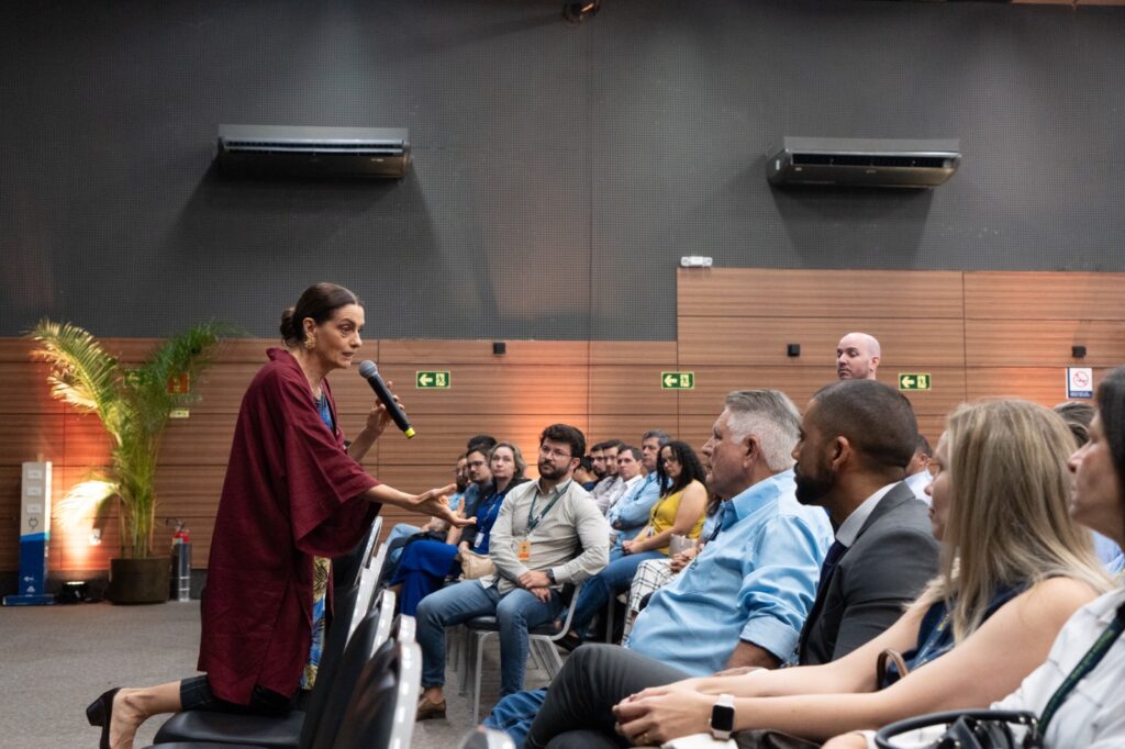 Denise Fraga é reconhecida por transformar sua trajetória nas artes em reflexão sobre ética, empatia e valores humanos nas organizações. Na apresentação, ela debateu sobre temas como gentileza, relação interpessoal e como a evolução da tecnologia tem deixado as pessoas cada vez mais distantes umas das outras.