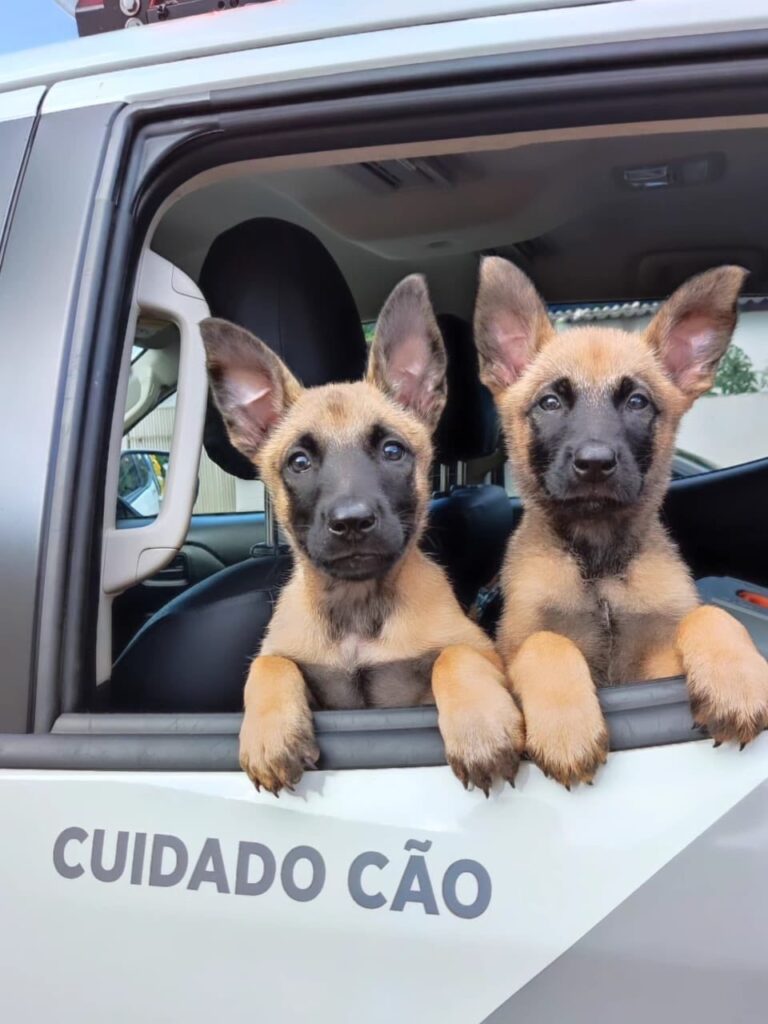 O 18º Batalhão de Polícia Militar apresenta os mais novos membros da equipe K9: Árthemis e Argos, filhotes da raça Pastor Belga Malinois, adquiridos por policiais do Batalhão.