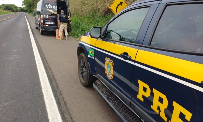 Indagado, o condutor informou que realizava o transporte de cigarros contrabandeados, o que foi confirmado em vistoria no compartimento de carga, que estava lotado.