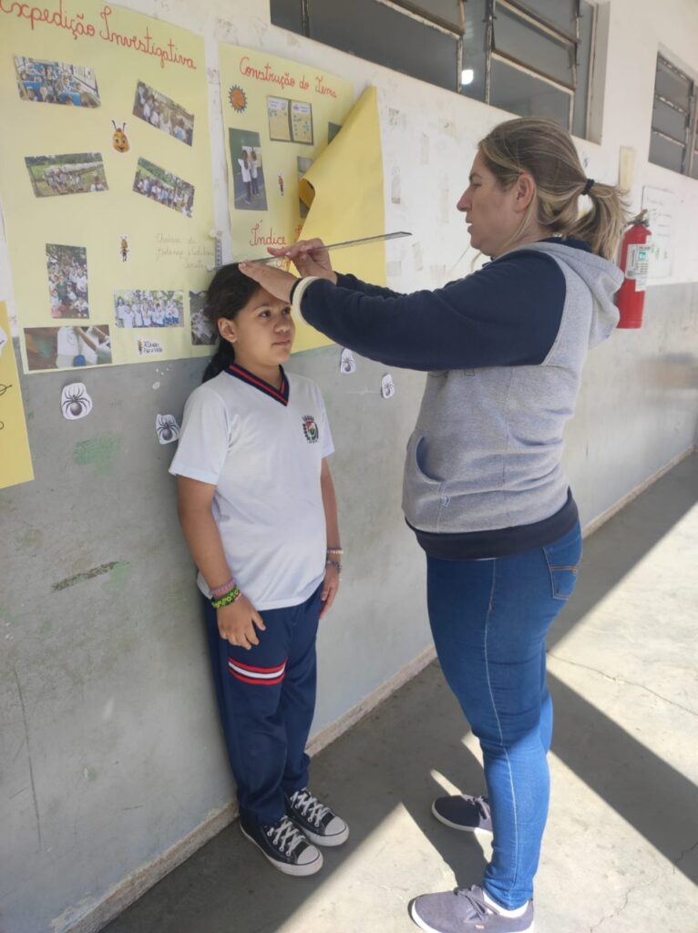 Nesta edição, as atividades aconteceram com alunos do CMEI Santa Maria, APAE, CMEI Josephina Pontes Benzi e Escola Bom Pastor. As Agentes Comunitárias de Saúde (ACSs) realizaram testes de pesagem nos estudantes, contribuindo para o monitoramento do crescimento e acompanhamento nutricional — uma medida essencial para o cuidado contínuo da saúde infantil.