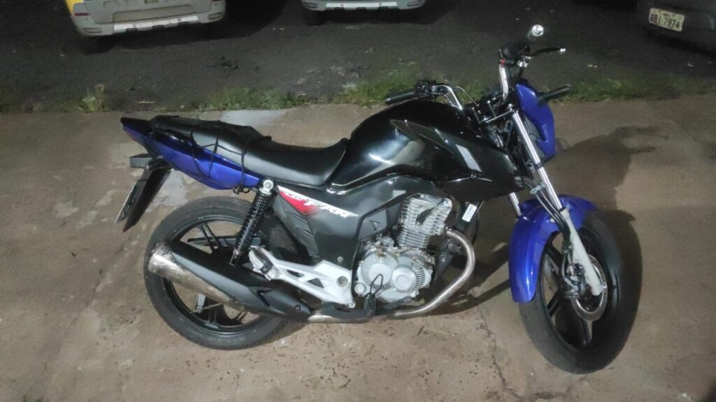 Durante a abordagem, foi realizada busca pessoal no condutor, não sendo localizado nenhum ilícito. Em consulta ao sistema da PMPR, verificou-se que o condutor era menor de idade e, portanto, não possuía habilitação para conduzir veículos automotores. A motocicleta, por sua vez, encontrava-se sem pendências administrativas.