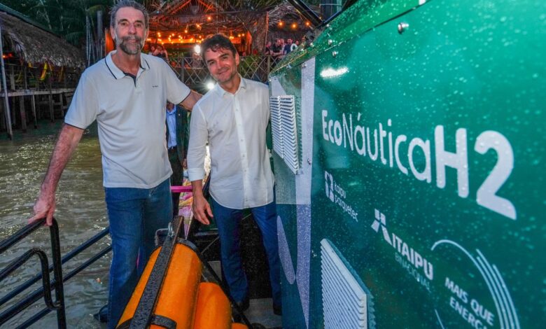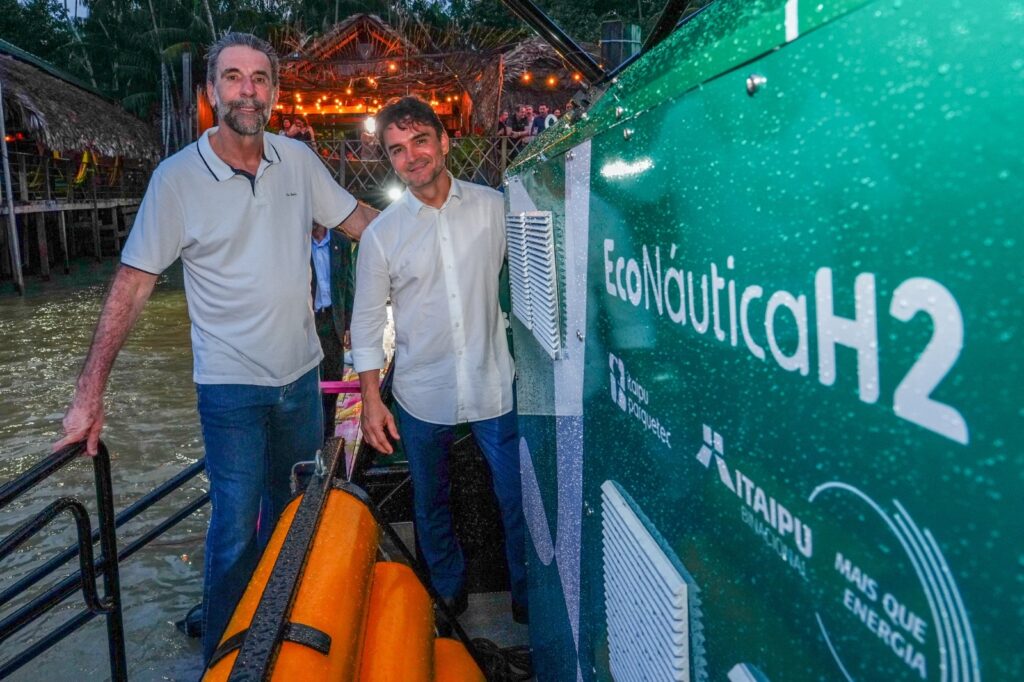A Itaipu Binacional lançou, nesta quarta-feira (12), o BotoH2 – primeiro barco 100% movido a hidrogênio verde da América Latina, em uma cerimônia na ilha do Combu, em Belém (PA). O lançamento fez parte da extensa programação da Itaipu na Conferência Mundial do Clima (COP30), na capital paraense. O barco foi desenvolvido em parceria com o Itaipu Parquetec e será utilizado na coleta seletiva das ilhas de Belém.