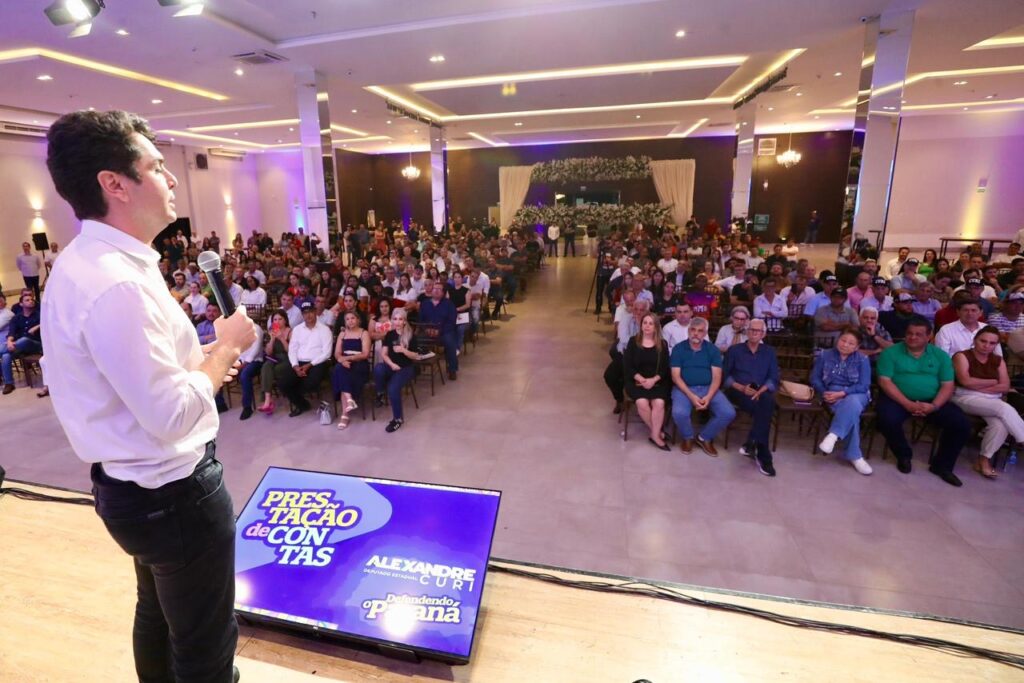 O deputado Alexandre Curi (PSD) realizou na noite de sexta-feira (14) um encontro de prestação de contas em Campo Mourão, reunindo mais de 500 lideranças políticas, empresariais e representantes de organizações sociais da Comunidade dos Municípios da Região de Campo Mourão (Comcam) e do Noroeste do Estado. Esta foi a 11ª reunião promovida pelo parlamentar em 2025.