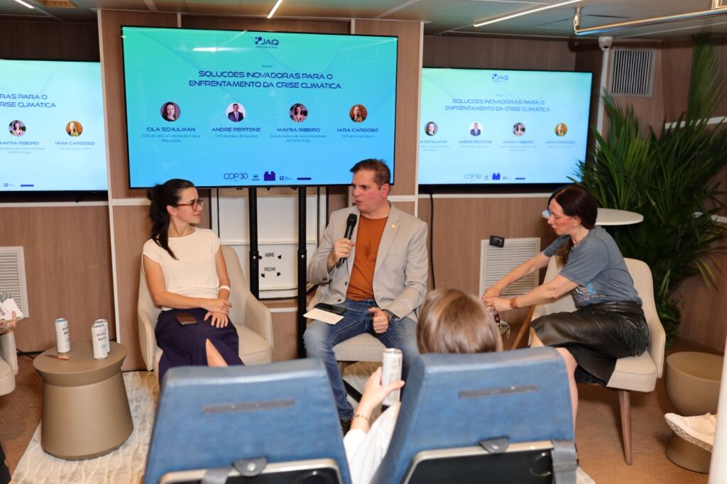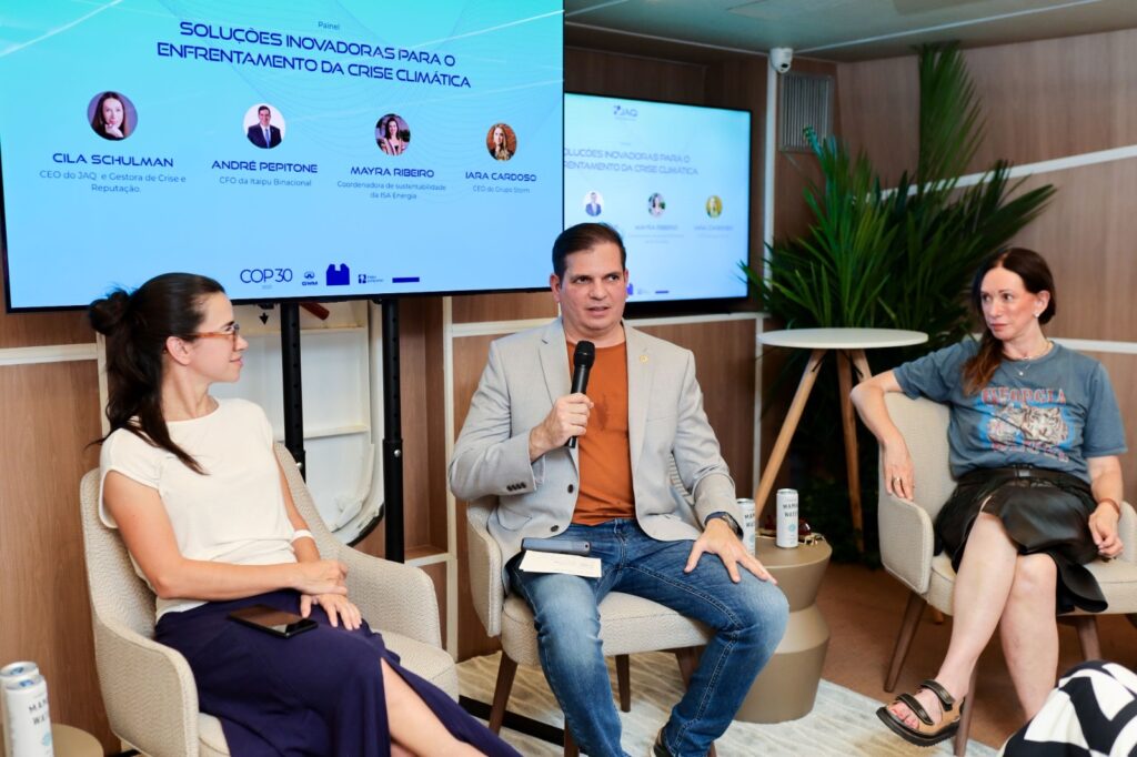 O diretor financeiro da Itaipu Binacional, André Pepitone, reafirmou no último sábado (15) o importante papel que a usina vem desempenhando no avanço da transição energética e no enfrentamento da crise climática. Pepitone participou do painel “Soluções inovadoras para o enfrentamento da crise climática”, promovido pela JAQ Hidrogênio Verde/Grupo Náutica, durante a COP 30, em Belém (PA).