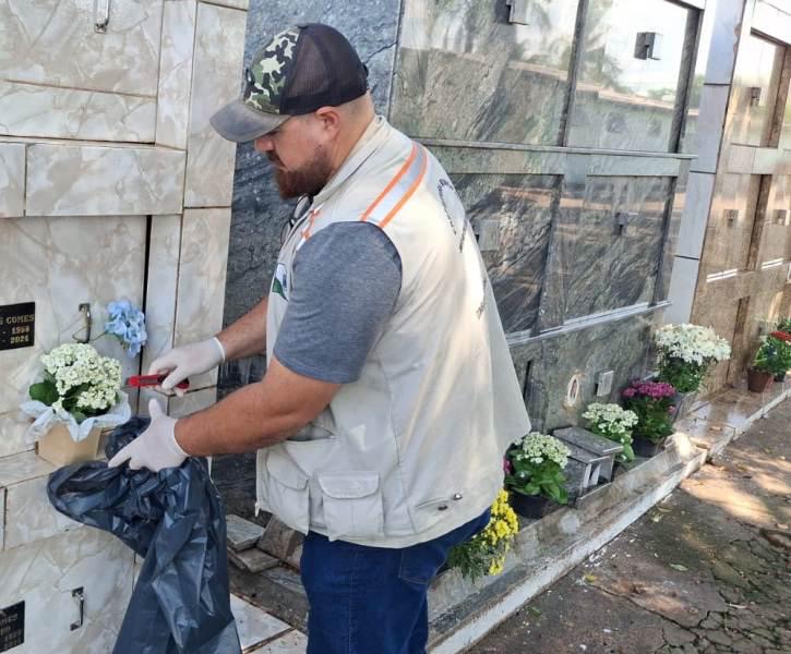 O Setor Municipal de Controle de Endemias já realizou sete ações – três delas à noite – no Cemitério São João Batista, resultando na captura de mais de 199 escorpiões. “Após o feriado de 2 de novembro, retornamos ao local e retiramos todos os sacos plásticos dos vasos”, explicou a responsável pelo setor de Endemias, Cristiane Aparecida dos Reis.