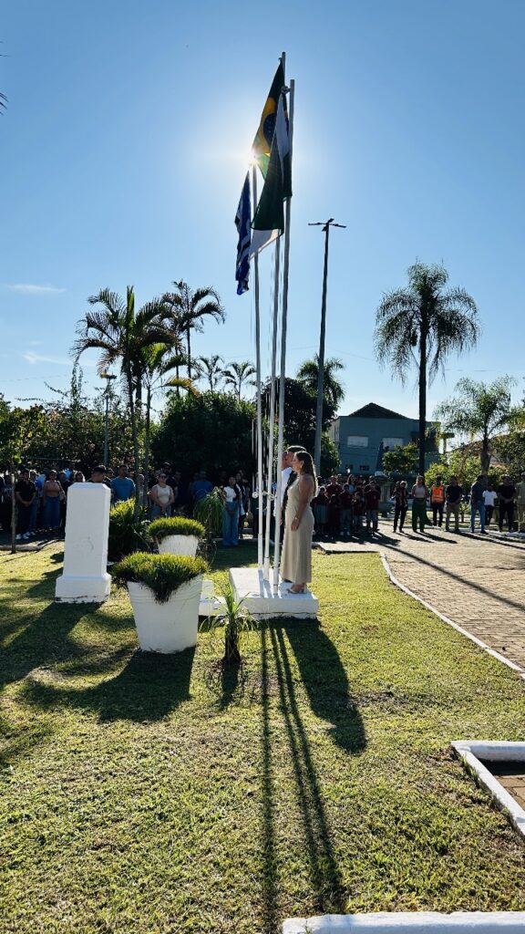 A solenidade contou com a presença da Polícia Militar, Corpo de Bombeiros, Tiro de Guerra 05-007, Polícia Científica, servidores municipais e moradores, que prestigiaram o momento cívico em homenagem à cidade.