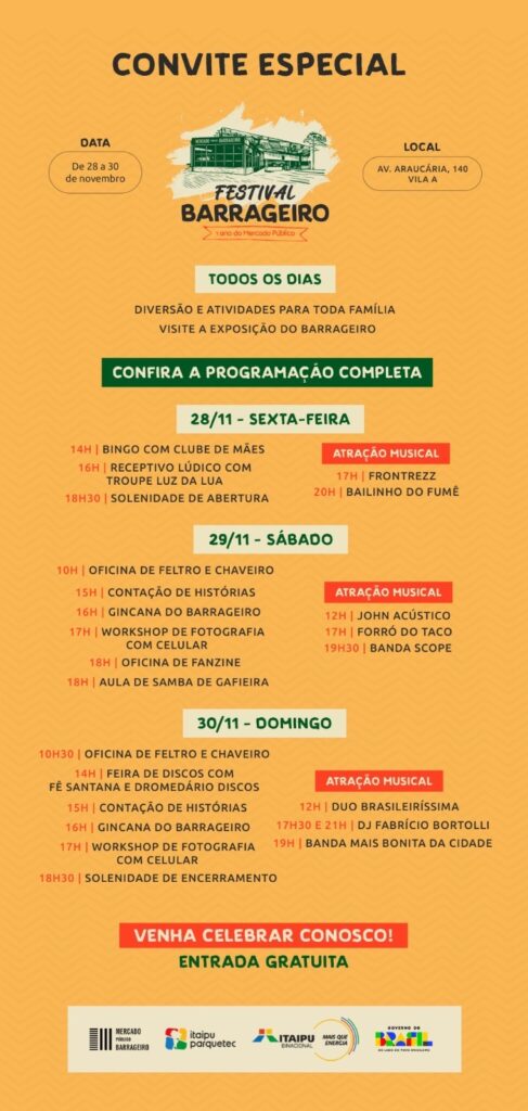 “Completar um ano de atividades mostra que o Mercado Público Barrageiro já faz parte do cotidiano da cidade. Ele ampliou rotas, trouxe novas experiências e fortaleceu a presença do bairro no mapa turístico de Foz do Iguaçu. Nosso objetivo agora é seguir qualificando esse espaço para que continue gerando oportunidades, movimentando a economia e revelando a diversidade cultural que torna nossa região única” afirmou Yuri Benites, diretor de turismo do Itaipu Parquetec.