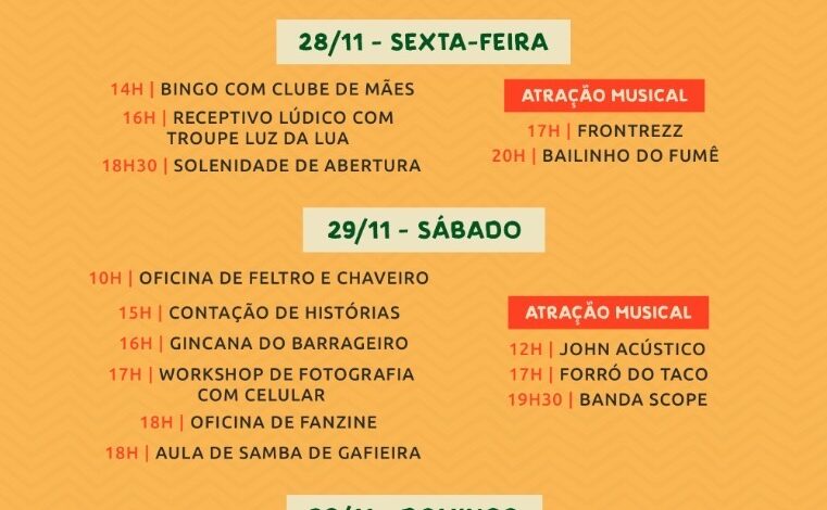 Para comemorar esse marco histórico, entre os dias 28 e 30 de novembro de 2025, o Mercado promoverá uma programação especial, com atividades para todas as idades. O Festival Barrageiro será composto por uma programação diversificada com a atividades artísticas e culturais ao longo dos 3 dias, incluindo a apresentação da Banda Mais Bonita da Cidade no domingo, às 19 horas.
