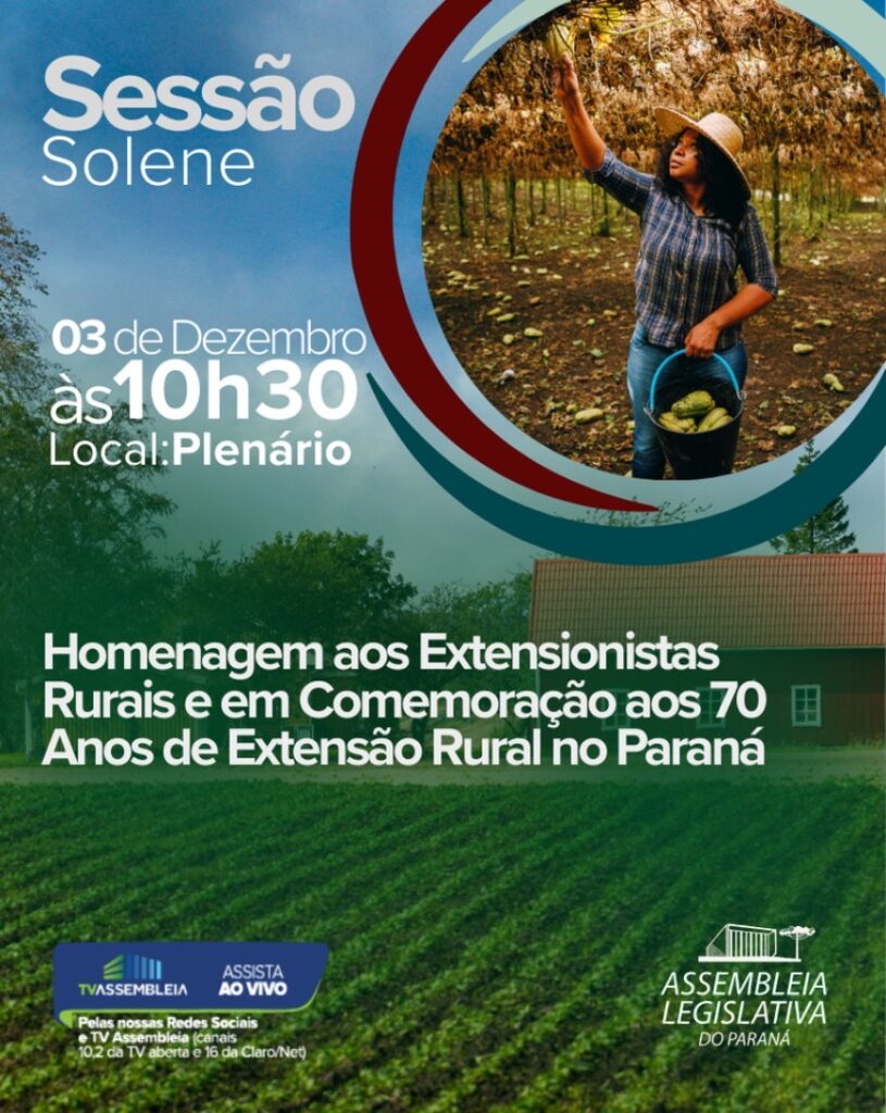 A solenidade reconhecerá o papel da Extensão Rural como política pública fundamental para o desenvolvimento econômico, social e ambiental do Paraná. “Ao longo de sete décadas, seus profissionais têm assegurado assistência técnica, difusão de tecnologias, promoção da sustentabilidade produtiva, incremento da renda agrícola, segurança alimentar e fortalecimento das comunidades rurais em todas as regiões do Estado”, ressaltam os autores da solenidade.