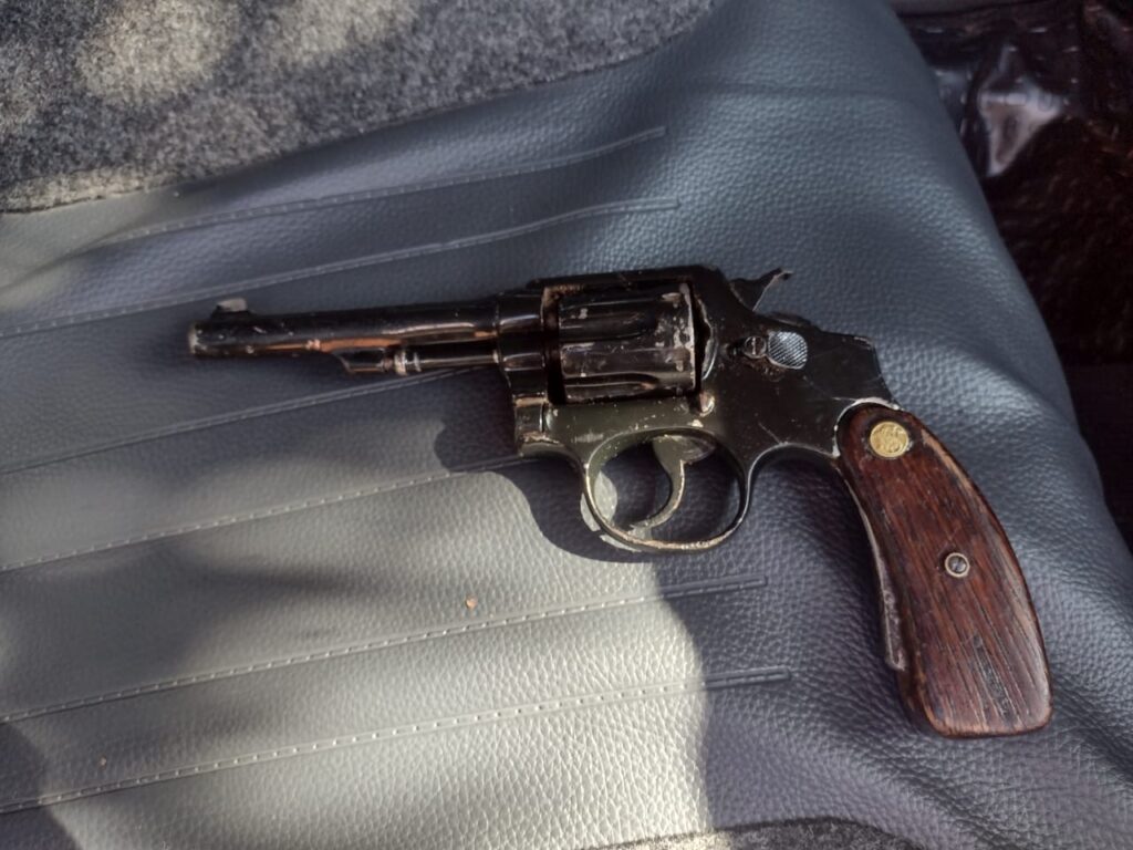 Na primeira residência vistoriada, foi encontrado um revólver calibre .38, sem munições, que estava guardado no interior do imóvel. A arma foi apreendida e teve sua cadeia de custódia preservada para encaminhamento às autoridades competentes.
