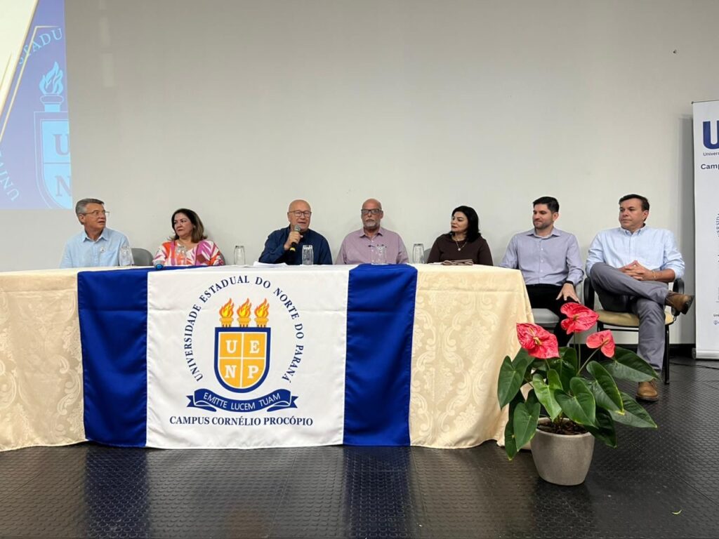 A mesa oficial contou com a presença do reitor da UENP, prof. dr. Fábio Antonio Néia Martini; da diretora do campus, profª drª Vanderléia da Silva Oliveira; do diretor do NEPAR-SBCS, dr. Oromar João Bertol; da profª drª Jully Gabriela Retzlaf de Oliveira; e do prof. dr. Felipe Bonini da Luz (UFPR).