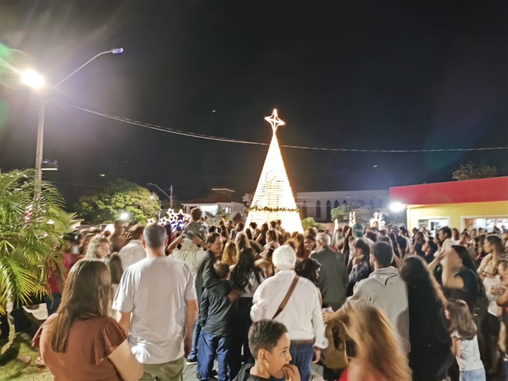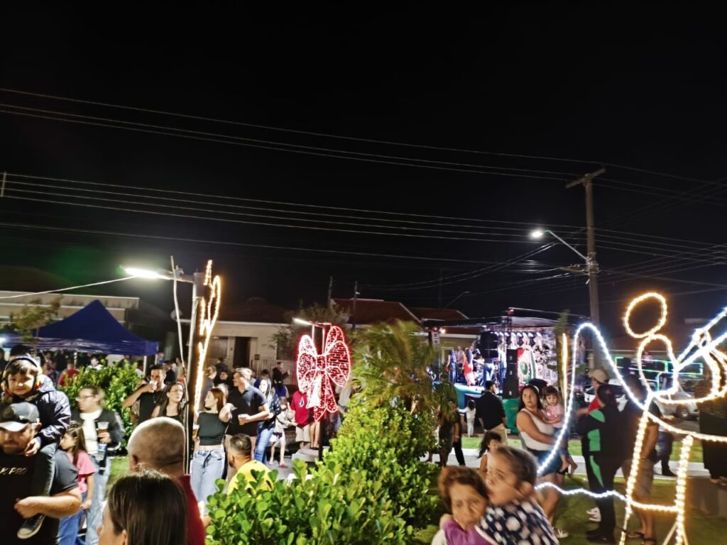A celebração começou com a contagem regressiva conduzida pela prefeita Izilda Rodrigues, que animou o público até o momento em que as luzes de Natal se acenderam, iluminando cada detalhe da decoração e arrancando aplausos da multidão.