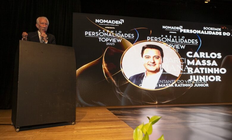 O governador Carlos Massa Ratinho Junior foi eleito a Personalidade do Ano pelo Prêmio TOPVIEW Personalidades 2025. A cerimônia de entrega ocorreu na noite da última terça-feira (9), no Museu Oscar Niemeyer, em Curitiba. Representando o chefe do Executivo estadual, o vice-governador Darci Piana subiu ao palco para receber o Troféu Mário Petrelli, símbolo da premiação criada pelo artista argentino radicado no Brasil, Alfi Vivern.
