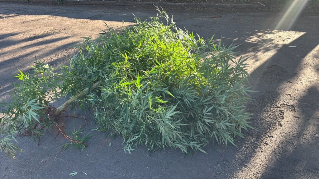No local, os policiais fizeram contato com a moradora, que autorizou a entrada da equipe para averiguação. Durante a vistoria no quintal da residência, os agentes localizaram a planta, posteriormente identificada como Cannabis sativa.