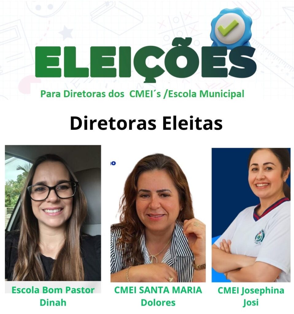 A Prefeita Izilda, juntamente com a Secretaria Municipal de Educação parabeniza as candidatas eleitas e deseja uma gestão comprometida com a qualidade do ensino, a valorização da comunidade escolar e o fortalecimento da educação pública no município.