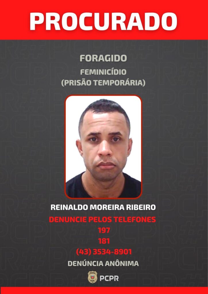 A Polícia Civil do Paraná, com o apoio da Polícia Militar e do Corpo de Bombeiros, segue realizando diligências ininterruptas para localizar Reinaldo Moreira Ribeiro, de 35 anos, que está foragido da Justiça. Contra ele foi expedido mandado de prisão temporária, e ele é apontado como o principal suspeito do desaparecimento de Thaís da Silva Santos, ocorrido na madrugada de 25 de dezembro de 2025, em Santo Antônio da Platina, no Norte Pioneiro do Estado.