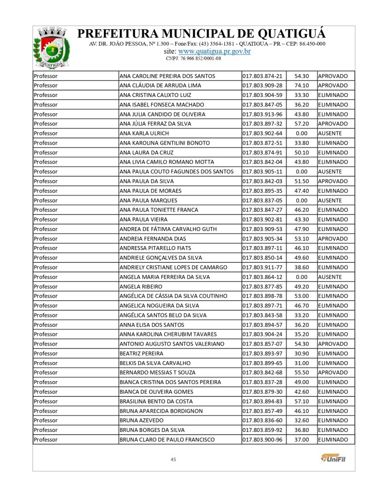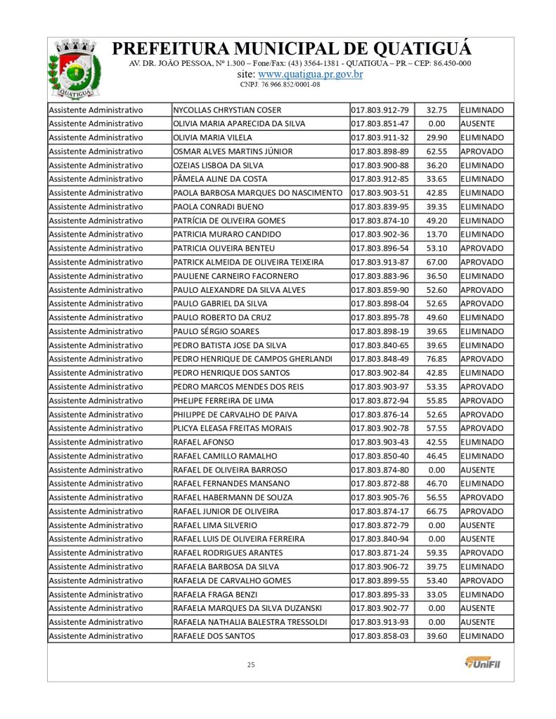 Foi publicado na manhã desta terça-feira (06) o resultado preliminar do Concurso Público nº 01/2025 da Prefeitura de Quatiguá. A divulgação ocorreu inicialmente no site do Instituto Unifil, responsável pela organização do certame, por meio do endereço eletrônico www.institutounifil.com.br.